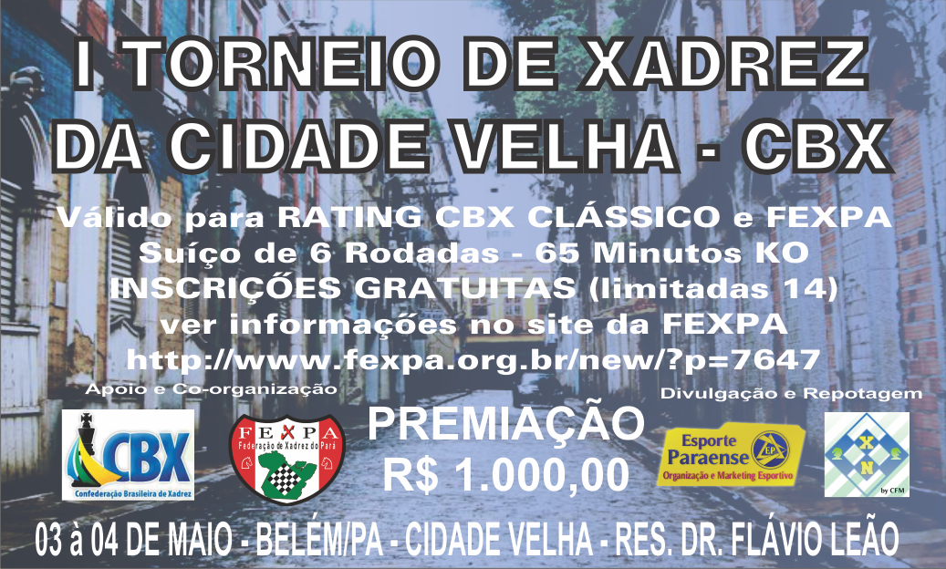 ENCERRADO I TORNEIO DE XADREZ DA CIDADE VELHA – BELÉM/PA http://chess-results.com/tnr129061.aspx?lan=10&art=1&rd=6&turdet=YES&flag=30&wi=984 Compartilhe Aqui: Email a link to a friend(abre em nova janela) E-mail Compartilhe no Linkedin(abre em nova janela) LinkedIn Imprimir(abre em nova janela) Imprimir Compartilhar no Facebook(abre em nova janela) Facebook Compartilhar no X(abre em nova janela) 18+ Compartilhar no WhatsApp(abre em nova janela) WhatsApp Compartilhar no Telegram(abre em nova janela) Telegram Curtir Carregando... Relacionado Publicado por Admin Ver todos os posts de Admin