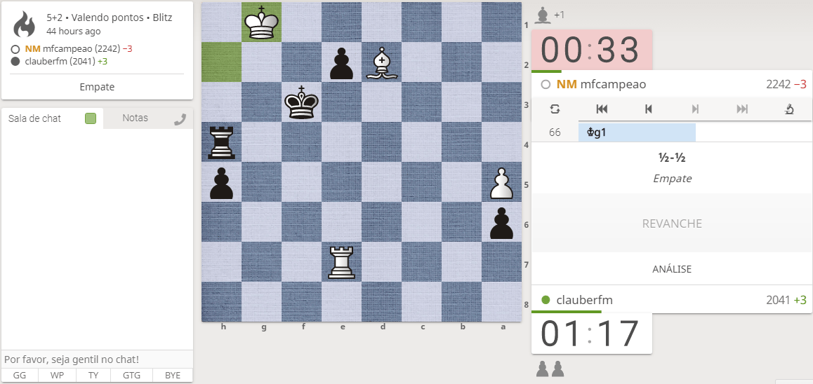 LIGA CHESS – COPA LICHESS – ROUND 04 – MESA 04 – CLAUBERFM X MFCAMPEAO (NM) 2,5X1,5